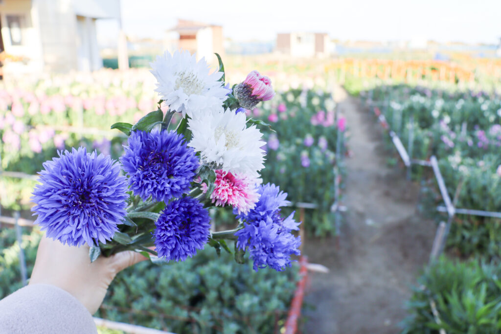 少しだけ咲いていた矢車草も摘み取りました。