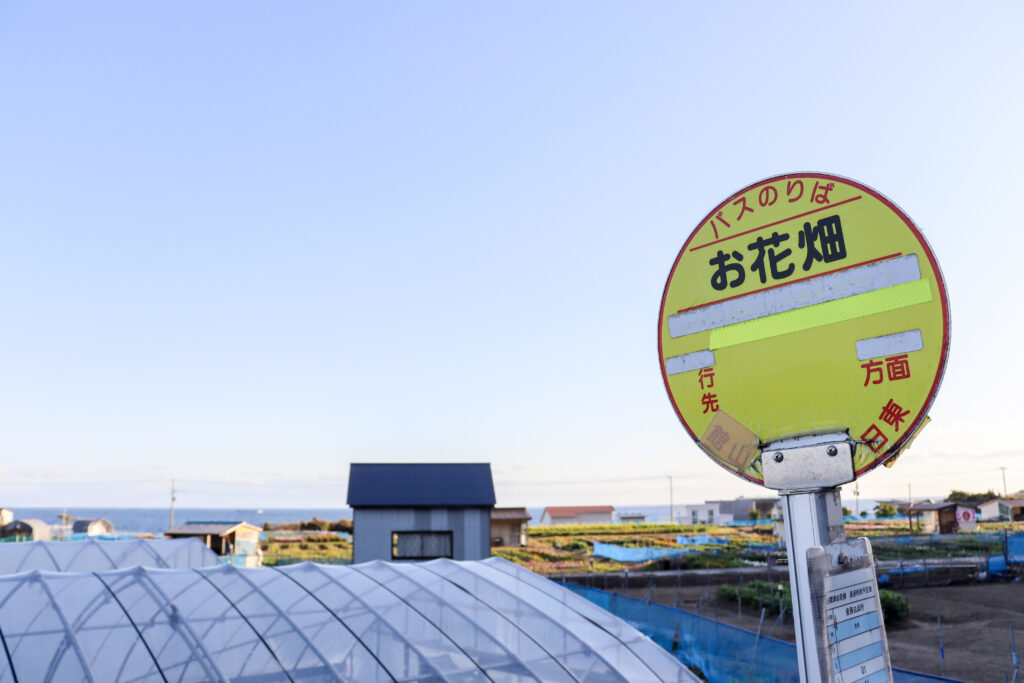 「お花畑」のバス停を撮ってから