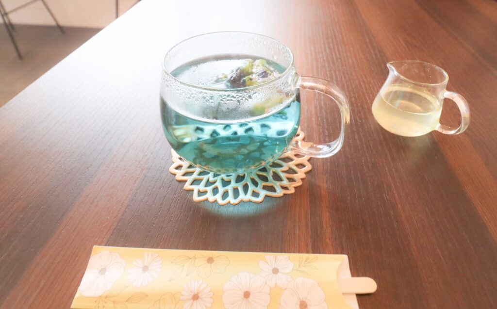 ドリンクはバタフライブルーレモネードを注文。