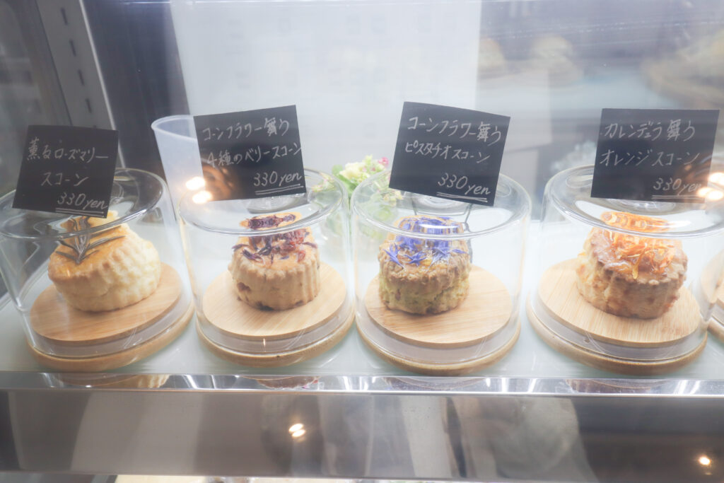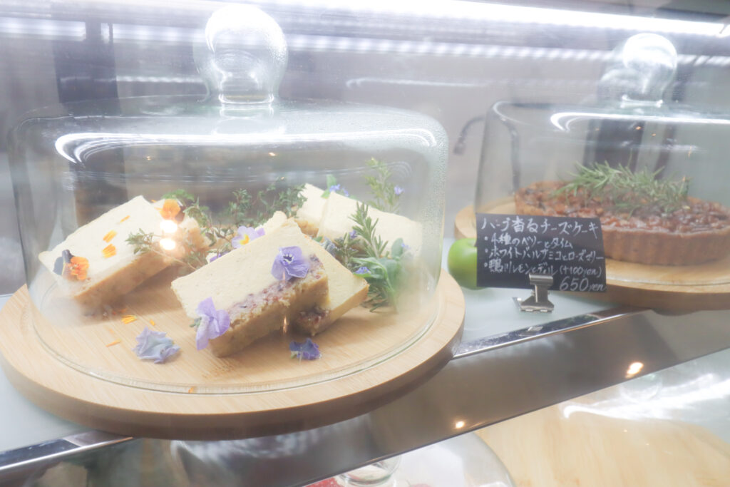 カフェ入り口のショーケース内のスイーツもかわいいし、