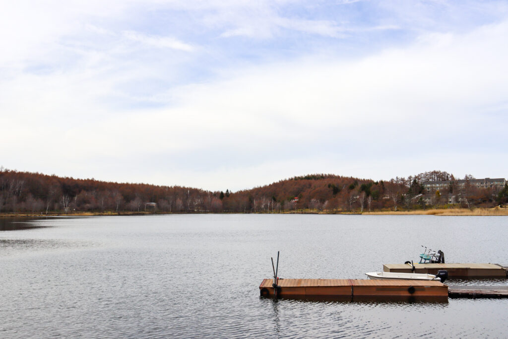 お店のすぐ近くにある女神湖へ。