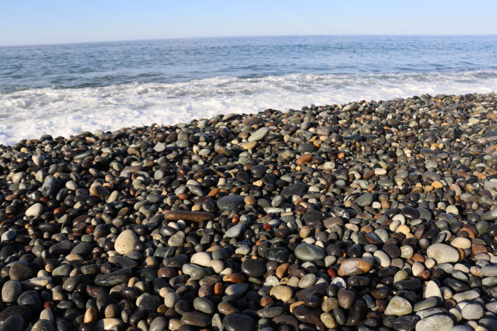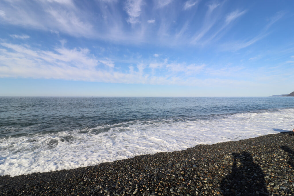 断崖絶壁に沿って狭い砂浜のある地形をしていて、