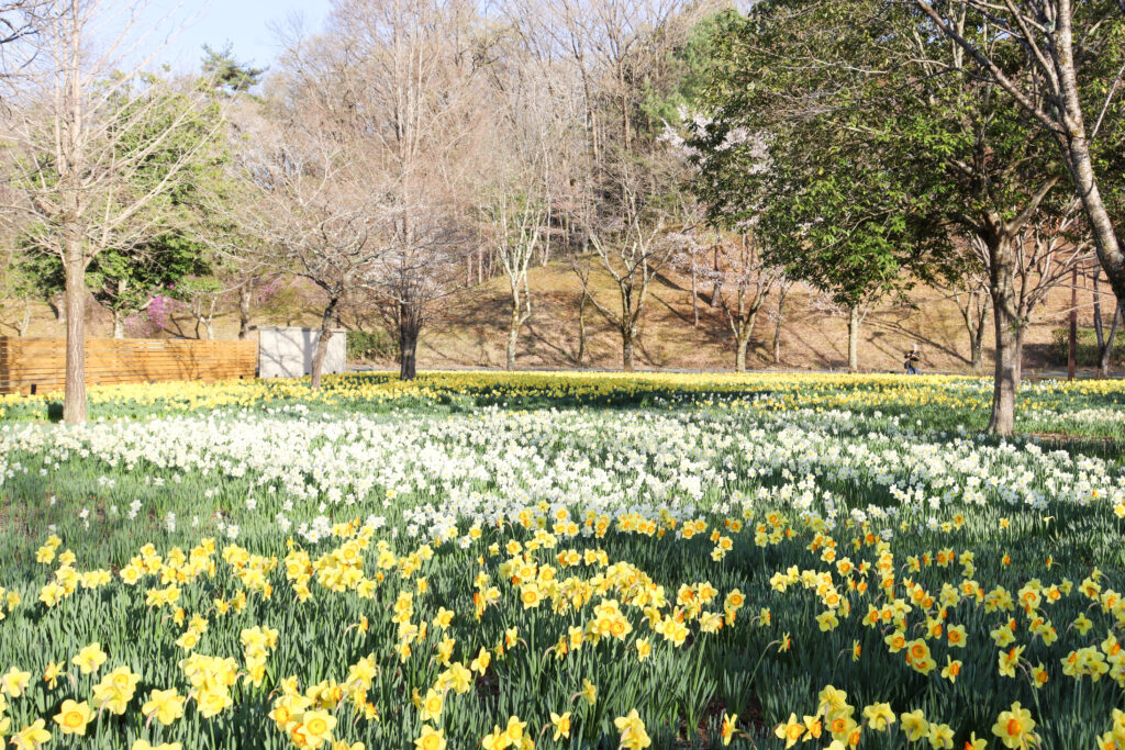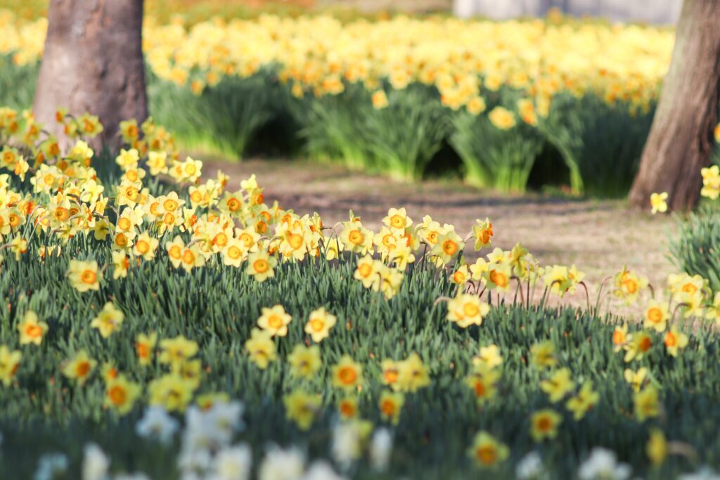 黄色と白の水仙がミックスで咲いていてかわいい!