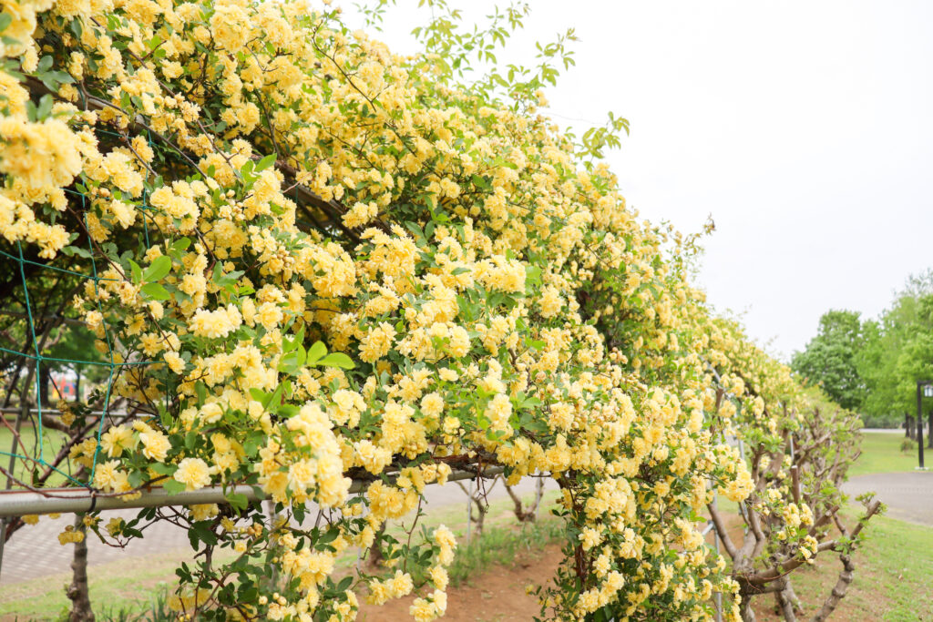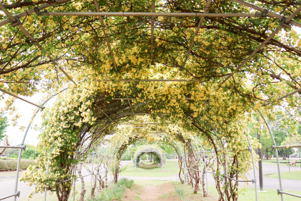 羽生水郷公園のモッコウバラのアーチ。